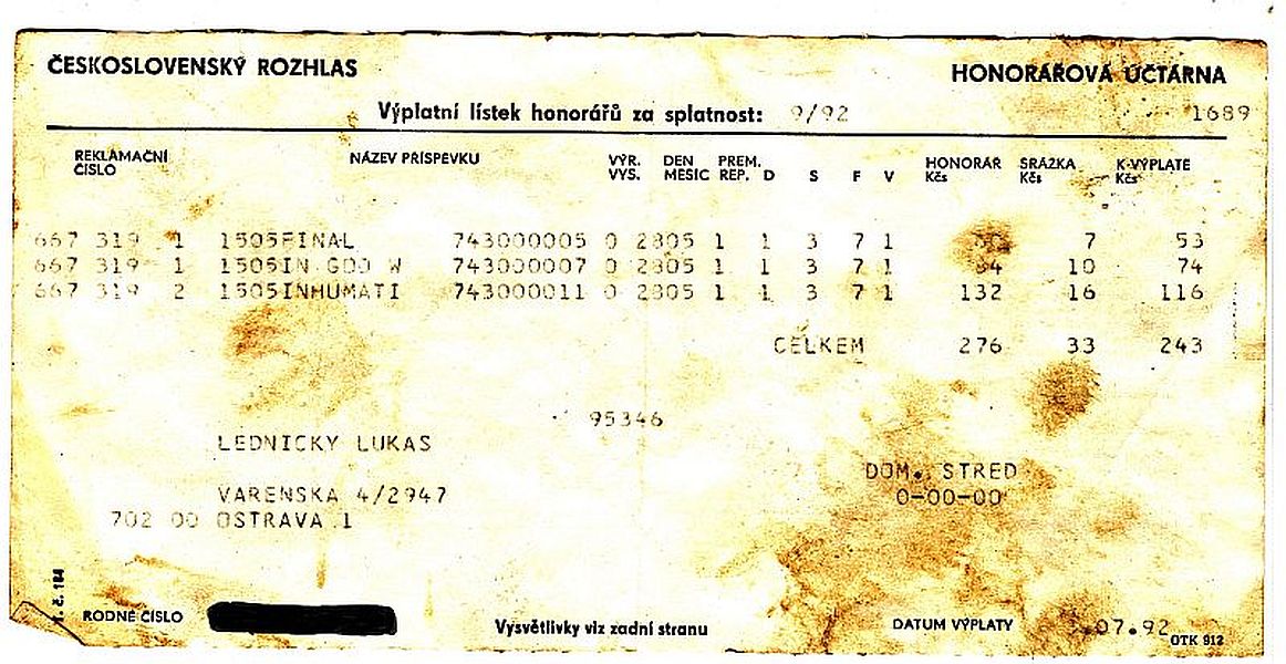 Luky - mzda za demo In God We Trust z ČS. rozhlasu
